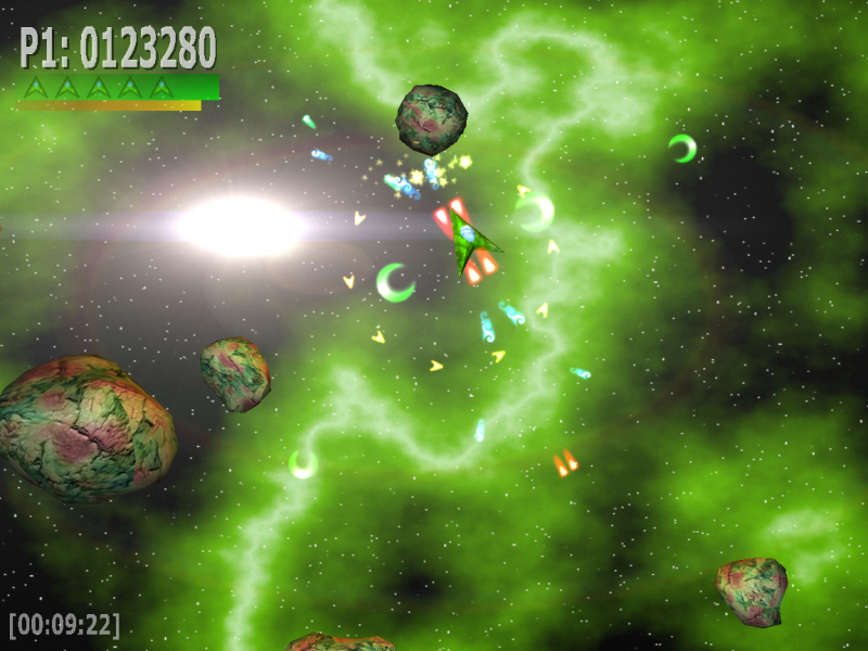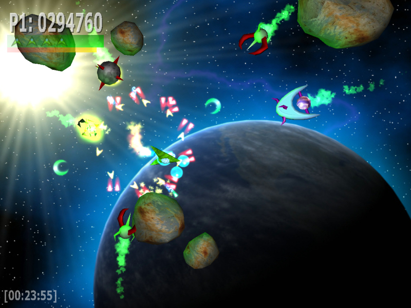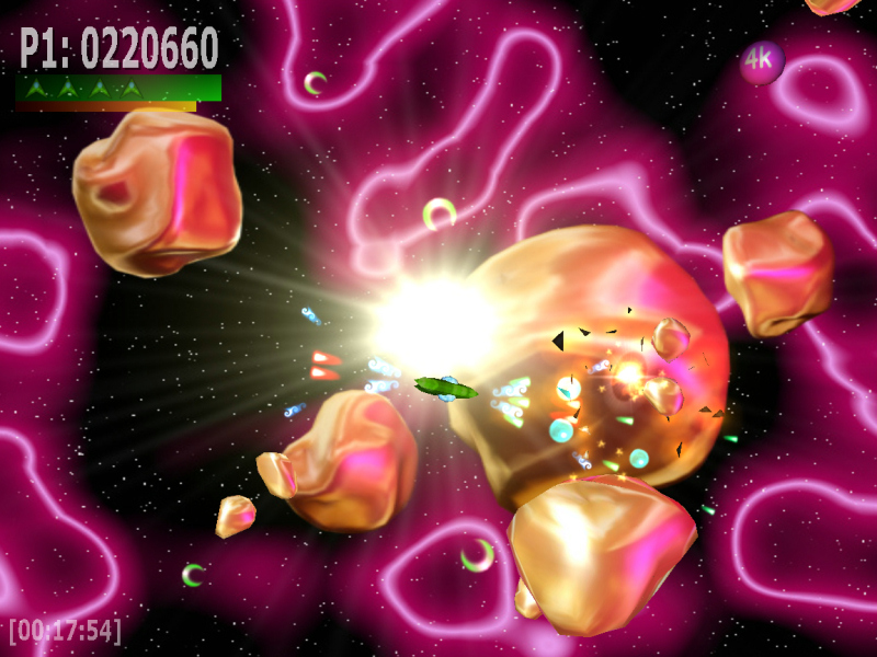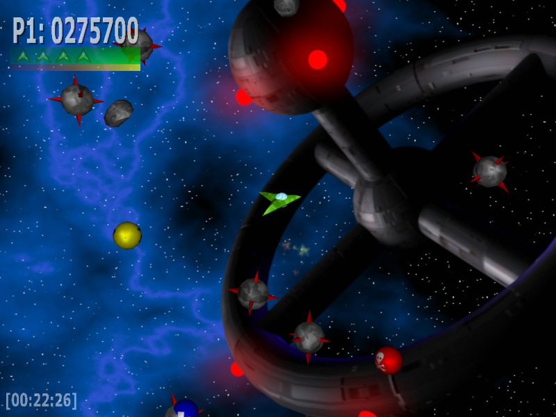 Musta aukko ja titaaninkova avaruusmiina - varsin tuhoisa yhdistelmä.  Kaksinpelin hallittua hämminkiä. Erityisesti sählää punainen, jota ohjataan hiirellä.  Kiiltomurikoissa käytetty heijastustehoste näyttää kerrassaan upealta.  Asepäivitykset ovat tehokkaita elossapysymisen vakuutuksia. |