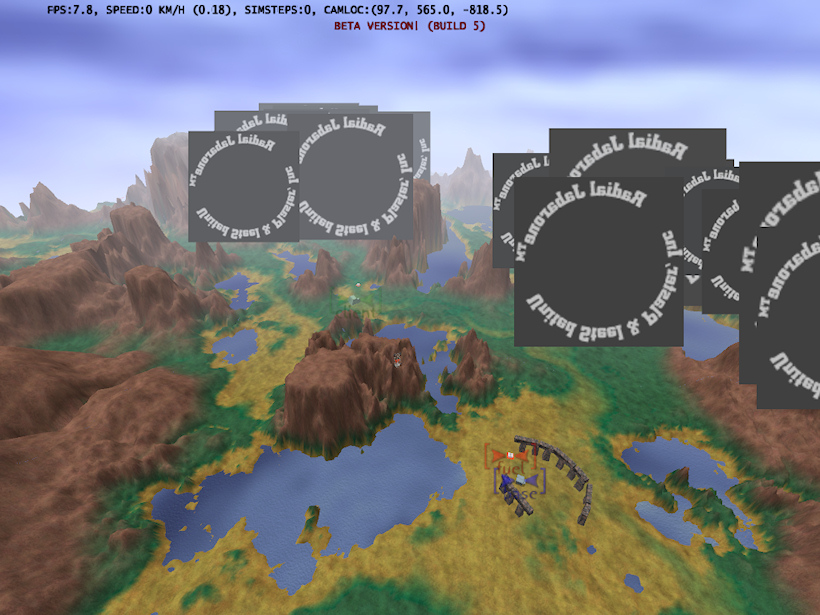 Pakoon! v1.ONE sisältää kuusi kolmiulotteista pizzanjakelumaailmaa. Metal Oxide Software kertoo, että niiden luomiseen käytetty moottori kykenee luomaan karkeasti ottaen 9042,5 kertaa suurempia maailmoja kuin oma Maa-planeettamme. On hämärän peitossa, ovatko Pakoon! v1.ONEn maailmat näin laajoja. Tutkimustretkitesteissä ei tullut seiniä vastaan, mutta maasto oli usein melko tasaista. Jokaisessa kentässä pizzoja jaetaan keskimäärin kolmelle eri tyypille, ja hekin asustavat pizzakuriirin pääpaikkana toimivan ravintolan läheisyydessä. Harmillista mahdollisuuksien tuhlausta. Pakoon! v1.ONEn maailmat ovat mukavan erilaisia tuttavuuksia. Desert on nimensä mukaan aavikkoa, ja hyvin tasaista sellaista. Coastalin tapaisia odottamattomia äkkipudotuksia siinä ei ole, joten leppoisa huristelu pizzat kyydissä on mahdollista. Crater Island ja The Wall edustavat pelin lentokonemaailmoja. Niissä nälkäiset erakot asuvat korkeimpien vuorten huipuilla ja niiden pohjalla. Näiden maailmojen korkeudet ovatkin todella huimia, useita satoja metrejä, ellei jopa kilometrin luokkaa. Autoiluakin voi kokeilla näissä maastoissa. Niillä on vain liian helppoa joutua vaikeisiin koloihin maassa, joista ei pääse mitenkään ylös, koska vetoa ei löydy tarpeeksi. Onneksi Pakoon! v1.ONEen on sisällytetty kumma Scene editor -ominaisuus, jonka ilmeisin käyttötarkoitus on auton nopea, teleporttimainen siirtely. Tällä työkalulla Bogianinkin saa Himalajan päälle pällistelemään, tai minne tahansa muuallekin. Scene editor vie pizzakuriirin asiakkaallekin paljon nopeammin kuin tavallisesti pelatessa. Kaksi kertaa e-kirjainta painamalla käynnistyvässä scene editorissa on kyllä vahva huijauksen maku, mutta sitäkin on pakko käyttää, jos vahingossa molskahtaa mereen. Pakoon! v1.ONE:n vesi on tahmaista velliä, ja sitä on paljon lähes jokaisessa maailmassa. Autot ja lentsikat jäävät oitis siihen kiinni kuin hämähäkin verkkoon, ja ainoa mahdollisuus poispääsyyn on scene-editor. Kun ei huvita huijata, pelin helppokäyttöisestä kartasta ilmenevät maailman maastomuodot hyvin ja erakot löytyvät helposti. Myös vesistöt on helppo kiertää. Scene editor -ominaisuudella saa todella muokattua ympäristöjä, mutta ainakaan arvostelijalla ei ollut tarvetta niiden rukkaamiseen. Ehdolla vuoden bugisimmaksi suomipeliksiPakoon v1.ONE ei ehkä ole kaikkien aikojen bugisin suomipeli, mutta viime vuosien peleistä kyllä. Periaatteessa tämä on ymmärrettävää, pääsihän peli vain beta-asteelle, joka tarkoittaa usein, että kyseessä on epävakaa teos. Pakoon! v1.ONEn bugittaminen on kuitenkin huippuärsyttävää, monestakin syystä. Ensinnäkin testikoneena käytetyssä Windows XP -laitteessa ei tarvinnut koskaan lopettaa Pakoon! v1.ONEn pelaamista itse, vaan aina säännöllisin väliajoin Windows päätti sulkea sen aina puolestani "laiton toiminto"-ruudun siivittämänä. Myös outoja ohjausbugeja ilmeni. Selittämättömästä syystä Bogian ei halunnut palata katolleen kääntymisen jälkeen oikein päin. Toisella kerralla menopeli yritti ohjata itseään kokoajan oikealle, eikä nuolinäppäimillä voinut vaikuttaa asiaan mitenkään. Pakoon! v1.ONE kärsii lisäksi suuresta määrästä grafiikkavirheitä. Ne ovat vähäpätöisempiä kuin kaatuilubugit, mutta varsin huvittavia. Useammankin kerran Coastalin rantavuorten yllä leijui autonrengastekstuurein pinnoitettuja pilviä.