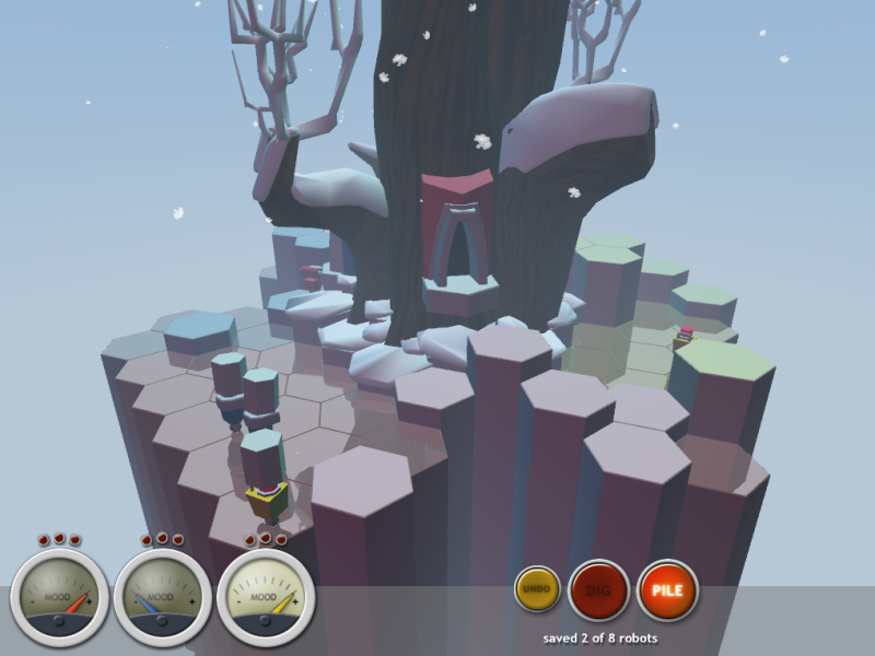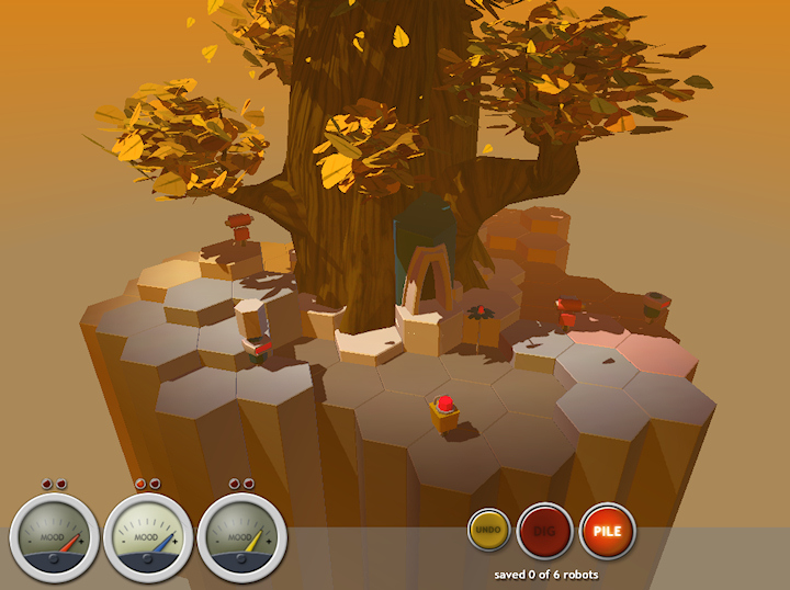 Kotipesän saavuttaminen vaikenee edelleen, kun vielä yksi aines lisätään Gerbera Quarryn jo valmiiksi monimutkaiseen soppaan. Sattuu olemaan niin, että Gerbera Quarryn roboteilla on tunteet. Jos koneet ovat vihaisia, ne kanniskelevat ja pinoavat maata minne sattuu eivätkä tottele käskyjä mairittelevasti. Silloin on hyvin vaikea tehdä mitään viisasta. Peliin sisällytetystä kumoa-napista on kyllä tiettyä hyötyä. Yleensä kaikki suunnitelmat tason läpäisemiseksi ovat pilalla, jos yhdenkin heimon mieliala on nollassa. Mielialaa on hoidettava antamalla roboille tehtäviä tasapuolisesti. Yhden heimon suosiminen alentaa muiden mielialaa. Siispä on viisasta antaa vuorotellen kaikille tehtäviä. Lisäpulmia tuo se, että jokaisella heimolla on kotialueensa puun ympärillä. Ne erottuvat punaisena, sinisenä tai keltaisena alueena. Robotit suivaantuvat, jos joku väärän heimon jäsen kaivelee heidän maitaan. Robojen mielialaa voi kätevästi seurata heimoittain kolmesta mittarista ruudun alaosasta. Nätti kuin mikäGerbera Quarry on erittäin nätti peli. Tämä saadaan aikaan taidokkaalla 3D-mallintamisella, jonka tuloksena yksinkertaiset kuusikulmiotkin saadaan näyttämään hyvältä. Myös roboteissa ja kenttien keskuspuussa ei ole valittamista. Erilaisia graafisia kikkoja esitellään mukavaan vauhtiin Gerbera Quarryn edetessä. Syksy-aiheisissa tasoissa värit ovat tyystin erilaisia verrattuna ensimmäiseen kesä-kenttään, ja kellastuneet lehdet leijailevat hienosti puusta kohti maata. Talvikentissä sataa hiljalleen lunta ja perusmaa on peilikirkasta jäätä, joka upeasti heijastaa kaiken, mitä kenttänäkymässä sillä hetkellä on.