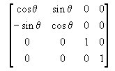 Yksikkömatriisi on matriisi, jossa ei määritellä lainkaan pyörityksiä tai siirrosta (siirrosvektori on siis nollavektori, jossa x, y ja z ovat kaikki nollia).
