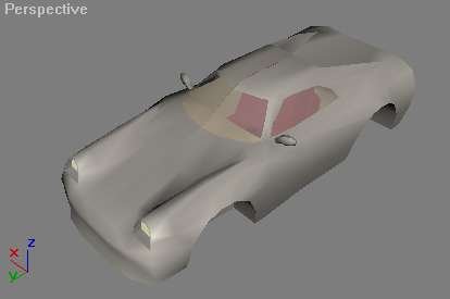 Sitten lamput. Lamppujahan on olemassa monenlaisia. Niidenkin tekemiseen kannattaa käyttää extrudea, mitäs muutakaan. Laitoin omaan autooni ns. Porche-lamput. Aloittelijan kannattaa tehdä yksinkertaisemmat upotetut lamput. Tässä ohjeet yksinkertaisesti: Valitse polygoni extrudoi sisäänpäin, hitsaa targetilla edessä olevat pisteet toisiinsa siten, että kaksi alimmaista pistettä hitsautuu kahteen ylimmäiseen. maalaa takaseinä esim. vaaleankeltaiseksi ja tee pieni lasi edge-extrudella ja hitsaamalla pisteet kiinni toisiinsa. Jos rohkeutta ja kärsivällisyyttä riittää, voit toki yrittää tehdä monimutkaisempiakin lamppuja.