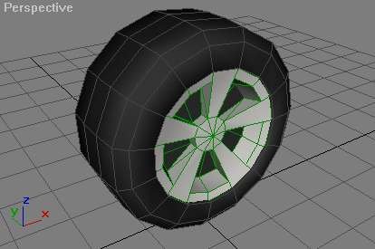 Tehkäämme siis renkaille paikat. Ensin tietysti täytyy valita paras mahdollinen paikka renkaille. Katso siis sivukuvakulmasta sopiva paikka ja tee ”apupyörät” Cylindereistä eli lieriöistä. Niitten avulla näet kokoajan tulevien renkaitten paikan. Sitten cuttaat niitten ympäriltä ja lopuksi extrudoit auton kylkeen kolon. Joudut käyttämään weldiä, eli pisteittenhitsaustyökalua, kun olet extrudoinut. Muista poistaa turhat polygonit. Tehdään renkaat lopuksi, koska ne hidastavat turhaan ohjelmaa.