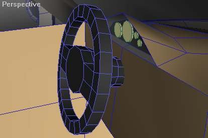 Nyt on viimein sen ratin vuoro. Jee! Sen ei pitäisi olla vaikeaa. Luultavasti aivoissasi raksuttaa jo kiivaasti ja odotat vain mystisiä sanoja: "cuttaa ja extrudoi, ja tarvittaessa hitsaa.". Siispä mitä tässä nyt turhia rupattelemaan? Siispä: cuttaa ja extrudoi, ja tarvittaessa hitsaa! (Olenpas minä nyt hauska…) Tähän väliin on hyvä tallentaa, sillä tämän operaation jälkeen ei voi enää autoa kunnolla muokata. Siis jos haluat tehdä autoosi vielä jotain, jätä ratti myöhemmäksi.