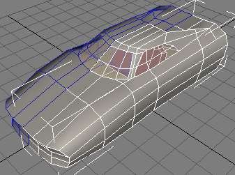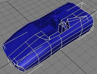 Sinulla saattaa olla hieman erilainen, mutta se ei haittaa. Jos ihmettelet noita takana olevia ”piikkejä”, niin voin selittää sen verran, että niistä tulee lopuksi samanlaisia, kuin Ferrarin Testarossassa. En tiedä niiden tarkkaa nimitystä mutta kuitenkin. Takaikkuna tulee siis olemaan aika pieni. Valitse seuraavaksi polygonit, jotka ovat sellaisia, jotka haluat upottaa auton korin sisään. Minun tapauksessani ne ovat neljä keskimmäistä. Puoliympyrän muotoisesta kuviosta tulee kojelauta, vai mikä tuulilasinaluslauta liekään. Ennen kuin rupeat extrudoimaan kannattaa tallentaa, sillä joskus ohjelma saattaa bugittaa extrudoitaessa. Muista myös tehdä jalkatilaa.