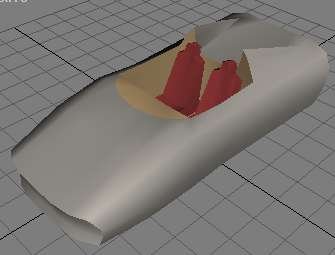 Seuraavaksi pitäisi tehdä penkit. Ne saa tehtyä melko vaivattomasti siten, että cuttaa auton lattiasta neliön muotoisen palan ja extrudoi sitä. Seuraavassa kuvassa olen tehnyt ohjaamon perusmuodon ja penkit extrudoimalla.