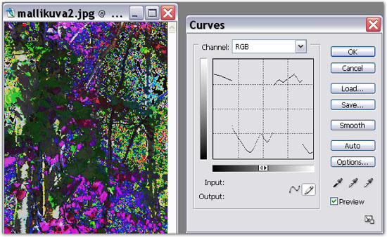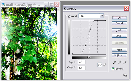 Curves antaa jossain määrin tarkemman kontrollin kirkkausarvojen muuttamiseen kuin Levels. Tämä johtuu siitä, että voit asettaa janalle niin paljon pisteitä kuin tahdot ja vetää niitä mihin suuntaan lystäät. Moniin tehtäviin tämä on kuitenkin mielestäni liian monimutkainen. Varomattomalla toiminnalla Curvesilla voi esimerkiksi tehdä valokuvalle pahaakin vahinkoa.