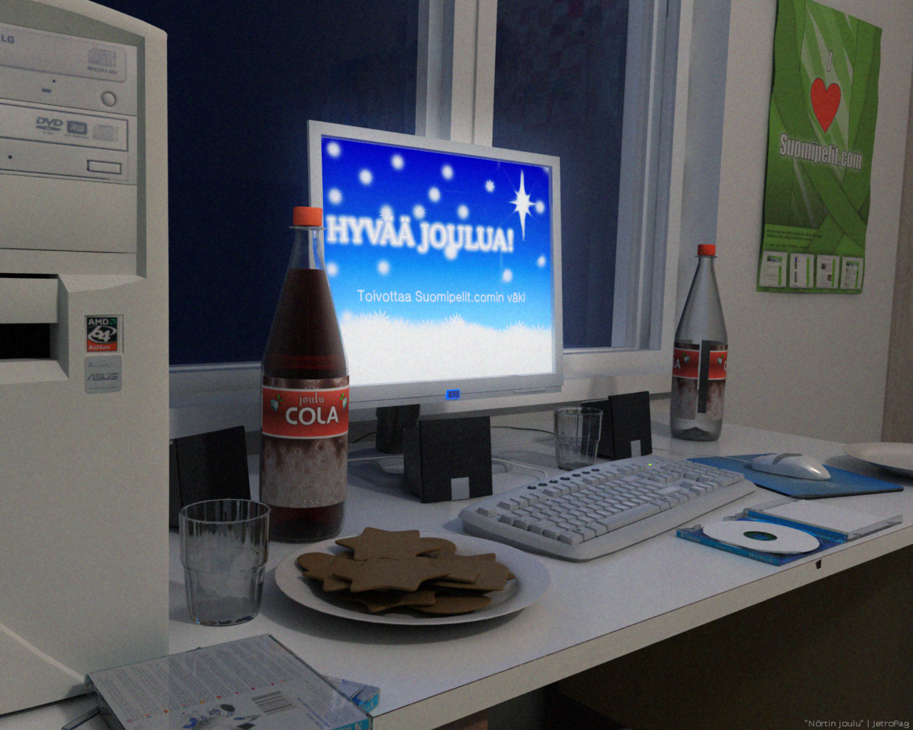 ![]() | Tänään Suomipelit.comin hovi-3D-mallintaja tarjoaa kävijäkunnallemme varteenotettavan joulunviettoehdotuksen. Pipareita, Joulu-Colaa (kuvittele haluamanasi virvoikkeena) ja Suomipelit.com. Täydellisen joulun ainekset, mitäpä muutakaan! |